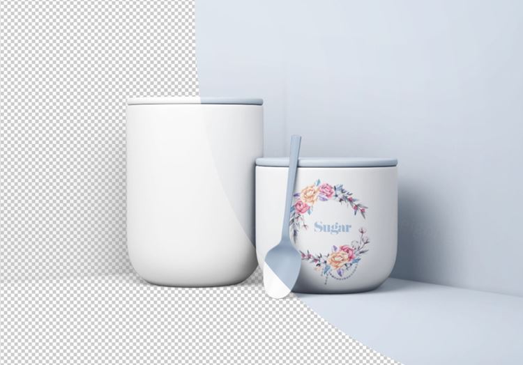 图穷联素材库 » 陶瓷杯外观设计样机模板 Minimal Jars with Spoon Mockup
