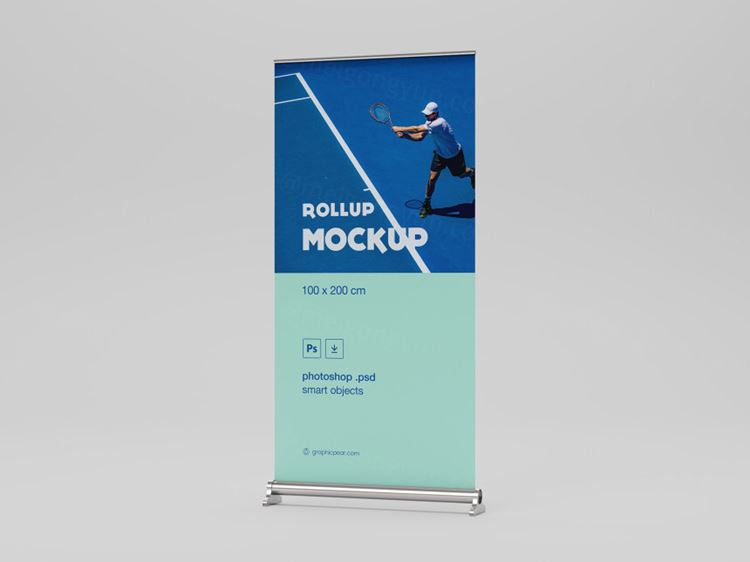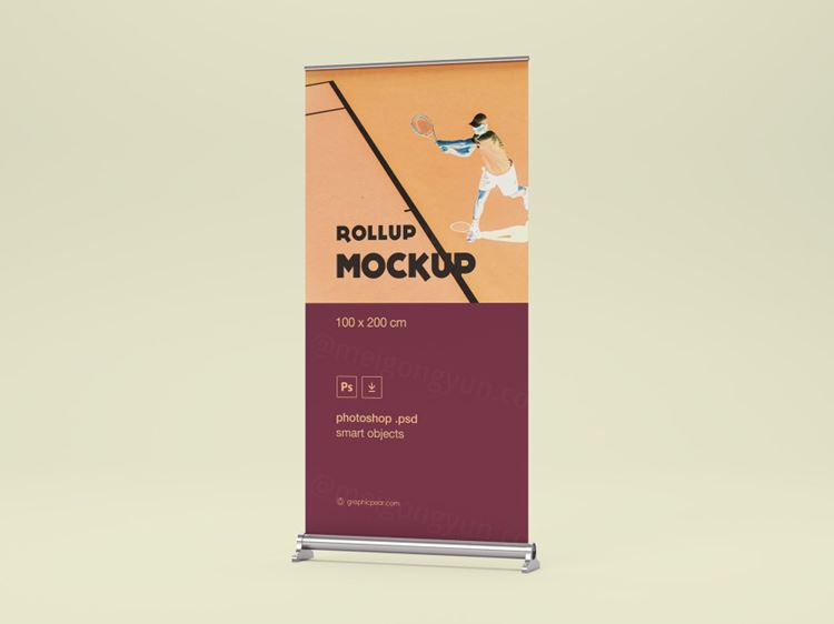 图穷联素材库 » 企业/品牌/店铺宣传X展架易拉宝广告样机模板 Rollup Mockup 100 x 200cm...