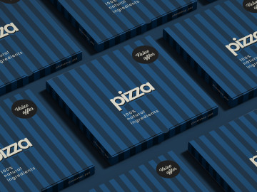 图穷联素材库 » 披萨盒包装外观设计效果图样机 Pizza Box Mockup