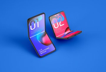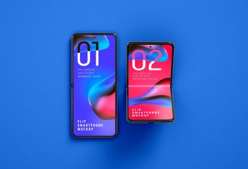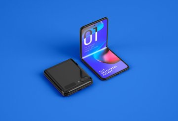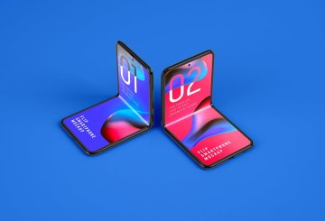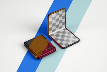 三星可折叠屏智能手机APP UI提案样机模板素材 Galaxy Z Flip Mockup | Folding Phone