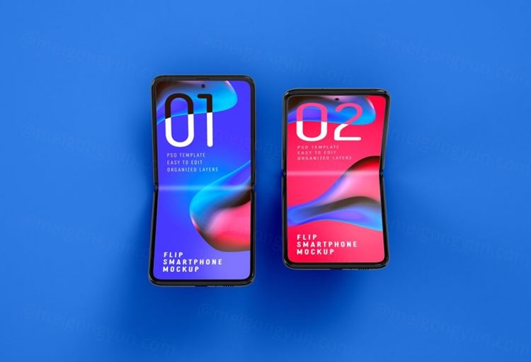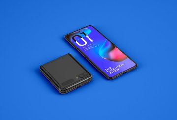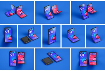 图穷联素材库 » 三星可折叠屏智能手机APP UI提案样机模板素材 Galaxy Z Flip Mockup | Folding Phone