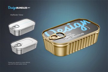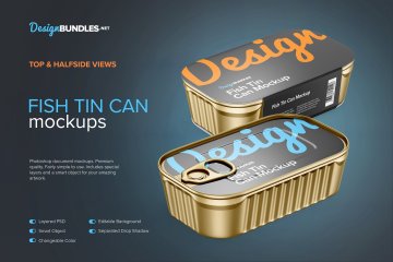 在这些鱼罐头模型中以更有效的方式展示您的设计。包括顶视图和半视图。优质的。相当简单易用。包含特殊的图层和一个智能对象。样本设计不包含在下载的文件中。