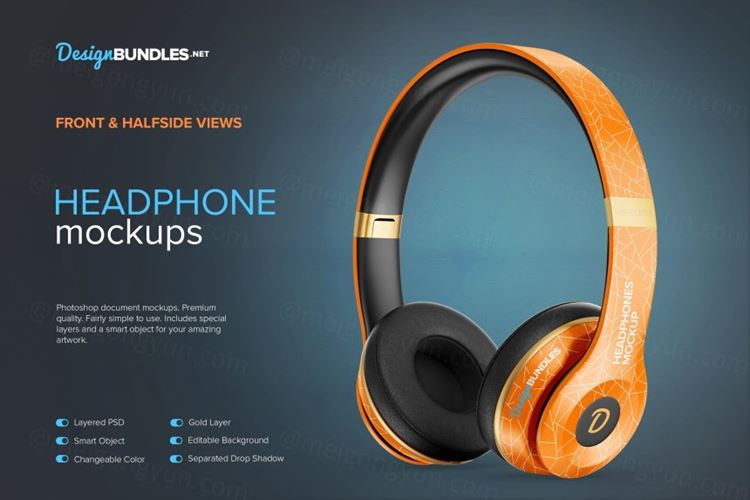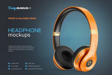 在这两个Headphone PSD Mockups上以更有效的方式显示您的设计。包括正面和侧面视图。优质的。包含特殊图层和智能 对象,可为您提供惊人的艺术品。