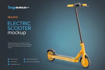 在此电动踏板车样机上以更有效的方式显示您的设计。可以用了。易于分别为不同零件上色。优质的。包含特殊的图层和一个智能对象。样本设计不包含在下载的文件中。