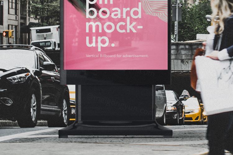 图穷联素材库 » 城市户外广告牌/海报样机 Psd Vertical Billboard Mockup