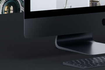 这是一幅美丽的psd iMac Pro样机展示架,以风格展示您的品牌和UI设计。借助智能层,轻松添加自己的图形。