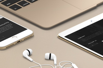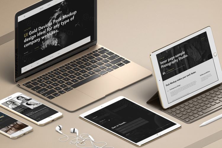 图穷联素材库 » 一组黄金psd等距设备和UI元素样机 UI Gold Psd Apple Devices Pack