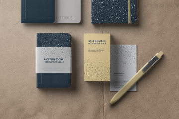 这是一套完整的高质量的psd笔记本样机,具有不同的样式和大小。我们还包括psd名片样机和铅笔。轻松更改颜色并使用智能图层添加自己的图形。