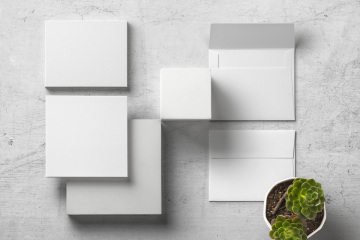 混合使用顶视图信封和psd邀请样机,以创建精美的品牌展示演示文稿。借助智能层,您可以轻松更改元素的颜色并添加自己的图形。
