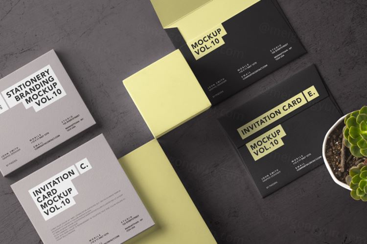 图穷联素材库 » 精美的信封和psd邀请样机 Psd Invitation Card Mockup Vol11