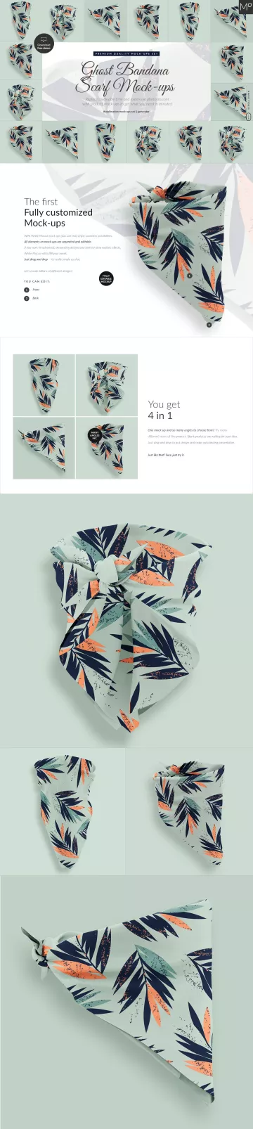 图穷联素材库 » 围巾头巾配饰设计提案样机PSD模板 Ghost Bandana Scarf Mock-ups Set