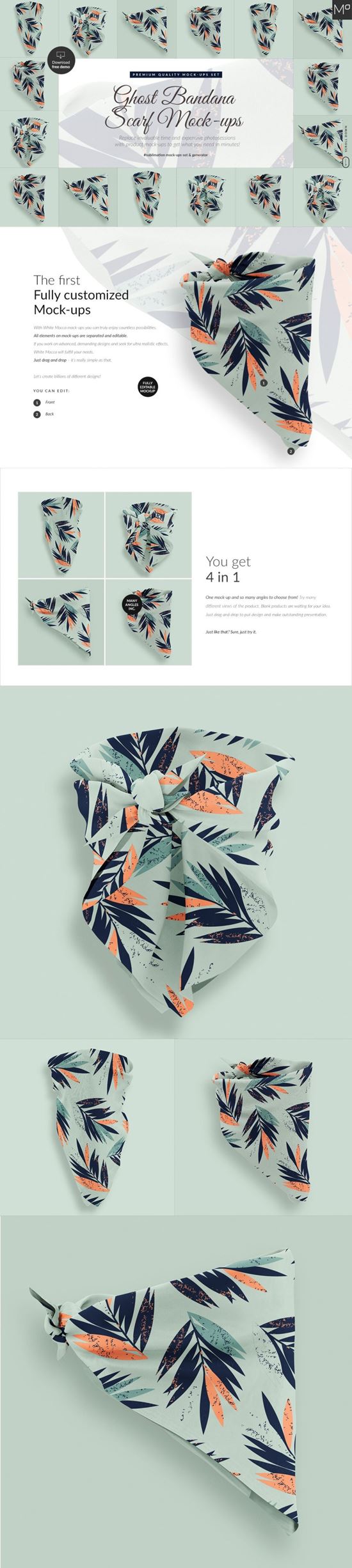 围巾头巾配饰设计提案样机PSD模板 Ghost Bandana Scarf Mock-ups Set