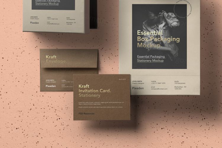 图穷联素材库 » 一系列包装和文具psd实体模型样机 Essential Packaging Stationery Mockup
