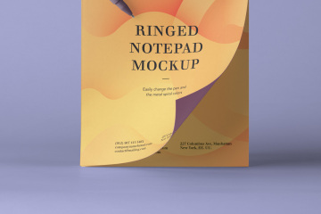 现代螺旋圈式psd记事本样机及其重力铅笔,可显示您的设计风格。您可以轻松更改记事本颜色,并使用智能图层添加自己的图形。