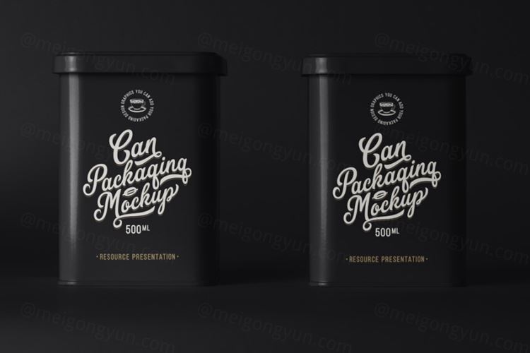 图穷联素材库 » 一个带盖的经典方形金属psd锡罐容器模型样机 Psd Can Tin Packaging Mockup