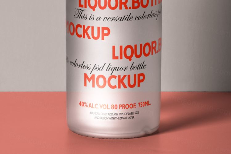 美丽的磨砂质感玻璃瓶psd样机 Psd Liquor Bottle Mockup Template