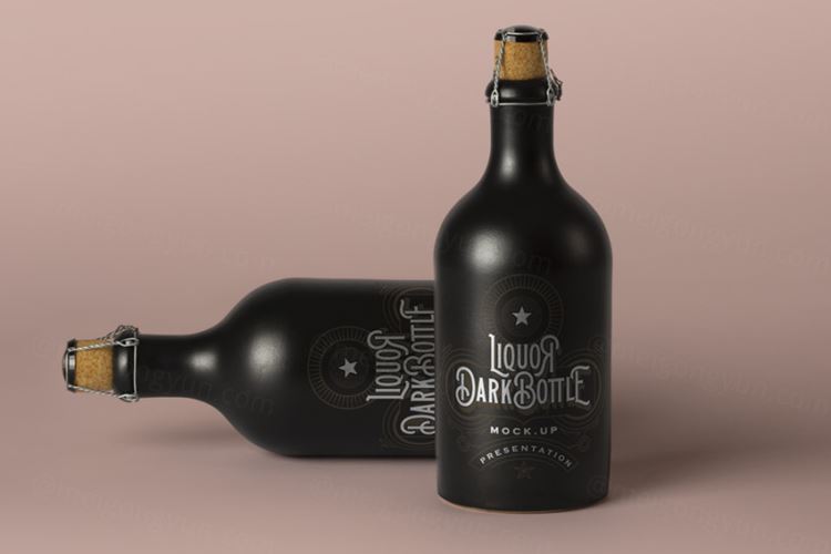 图穷联素材库 » 深色老式psd啤酒瓶模型样机 Dark Psd Liquor Bottle Mockup Vol2