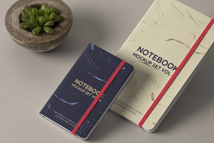 图穷联素材库 » 悬浮状态下的笔记本样机 Psd Notebook Mockup Set Vol 5