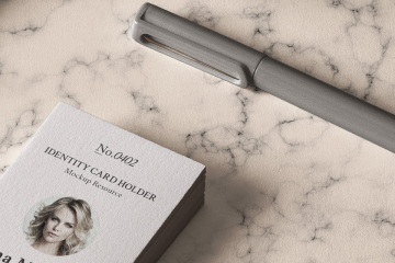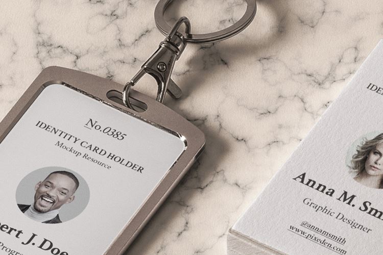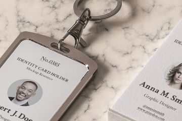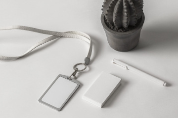 图穷联素材库 » 带有挂绳的工作牌样机 Stationery Psd ID Card Holder Mockup
