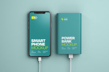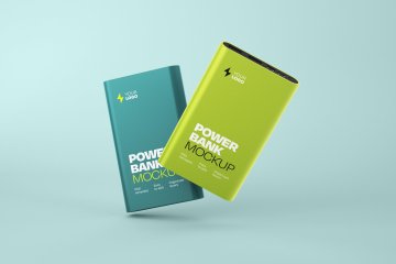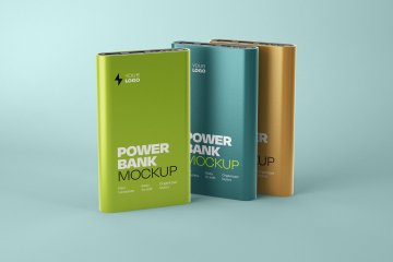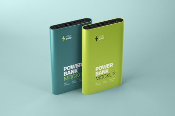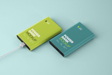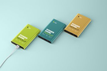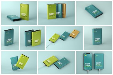 移动充电宝随身充电电源包装设计样机贴图展示PSD模板 Glossy Power Bank Mockup Set