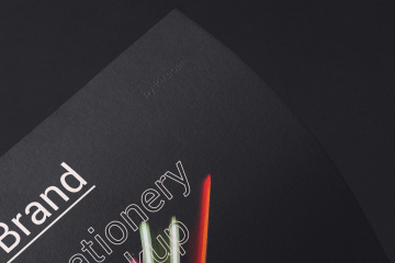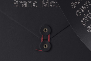 图穷联素材库 » 一套黑色简约风信封和标签样机 Psd Letter Envelope Mockup