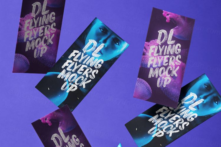 漂浮的传单样机 Flying Psd DL Flyer Mockup