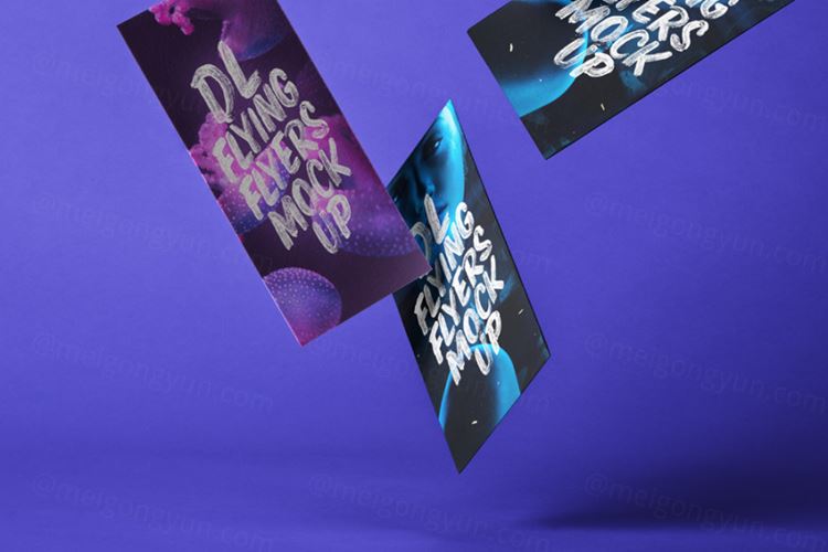 图穷联素材库 » 漂浮的传单样机 Flying Psd DL Flyer Mockup