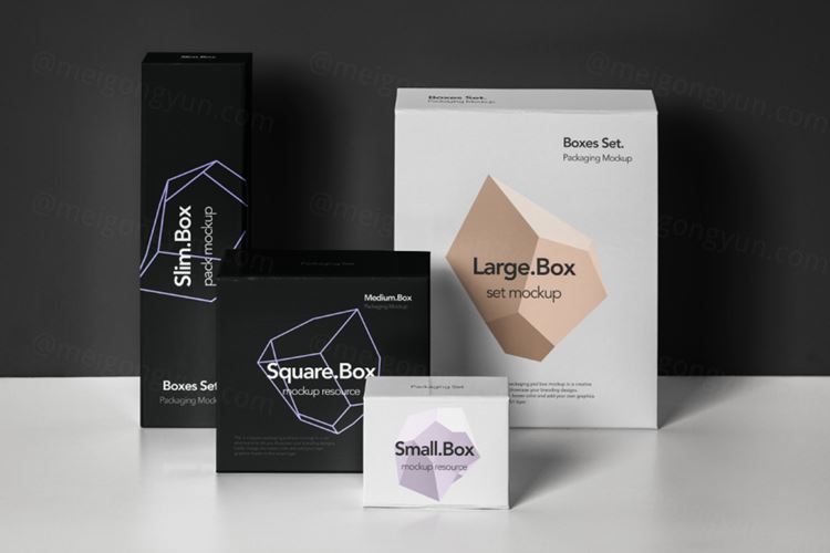 图穷联素材库 » 一套完整不同尺寸的psd盒子 Psd Boxes Packaging Pack Mockup 5