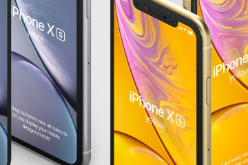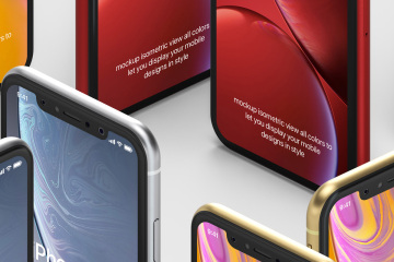 我们的psd iPhone XR样机系列的最后一部分与等距相机中的最后Phone XR psd颜色站在一起。借助智能图层,您可以轻松添加图形。