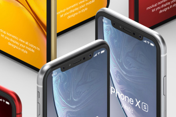图穷联素材库 » 多角度Psd iPhone XR样机等距 Psd iPhone XR Mockup Isometric Vol4