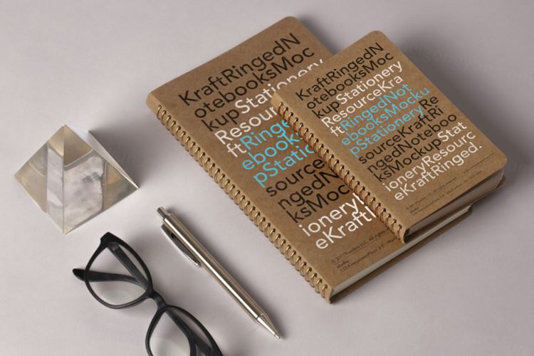 图穷联素材库 » 牛皮纸笔记本样机 Psd Kraft Ringed Notebooks Mockup