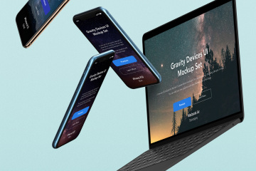 图穷联素材库 » 漂浮的UI psd重力模型设备样机 Gravity Psd Devices UI Mockup Set v5