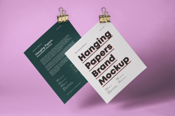 图穷联素材库 » 一组悬挂式psd纸模型样机 Hanging Psd Paper Brand Mockup