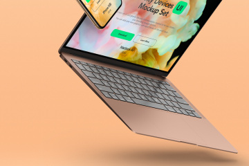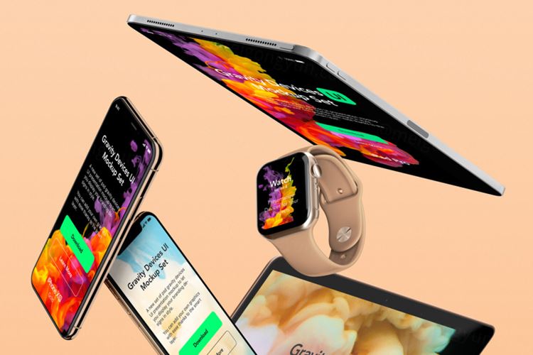 图穷联素材库 » 漂浮高质量重力样式psd UI设备样机 Gravity Psd Devices UI Mockup Set v8