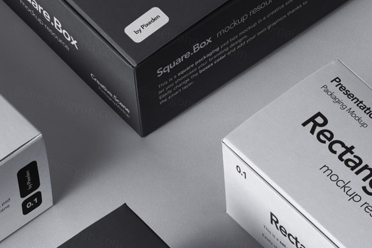 图穷联素材库 » 方形和矩形框盒Psd包装样机 Boxes Psd Packaging Mockup