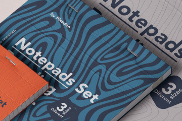 图穷联素材库 » 精美的三头装订psd记事本样机 Notepad Set Branding Mockup