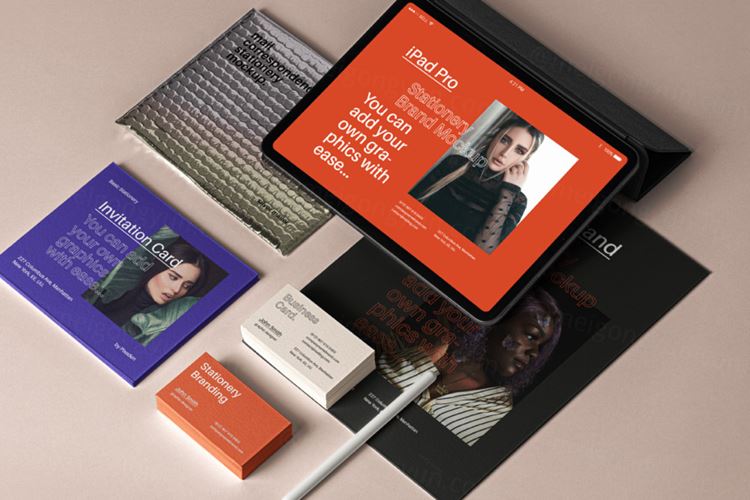 一组文具模型psd物品,可诱发iPad Pro psd模型,以在同一场景中显示所有图形设计。得益于智能层,您可以轻松地将其变成自己的。