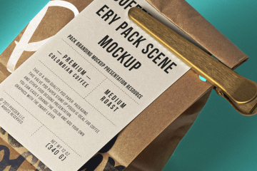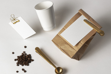 图穷联素材库 » 咖啡包装产品的高质量样机场景 Coffee Psd Stationery Scene Mockup