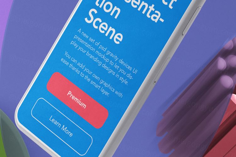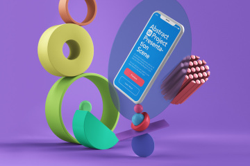 一款具有令人惊叹的几何形状的psd手机样机,以样式显示您的UI设计项目。借助智能层,您可以更改对象的颜色并轻松添加自己的图形。