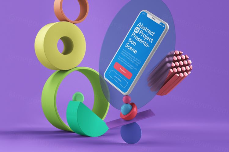 一款几何形状的psd手机样机 Abstract UI Project Scene Mockup 2