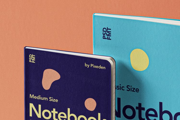 图穷联素材库 » 一组两个漂浮psd笔记本样机 Gravity Psd Notebook Set Mockup