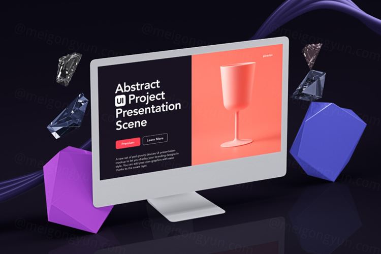 图穷联素材库 » 抽象UI电脑屏幕样机 Abstract UI Project Scene Mockup 3