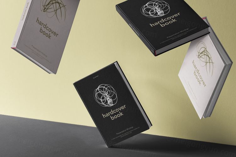 图穷联素材库 » 一组漂浮的psd书籍样机 Gravity Hardcover Psd Book Mockup