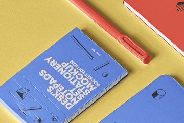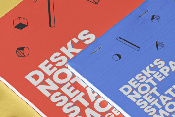 整套笔记本和记事本psd样机 Psd Notepad Mockup Desk Set