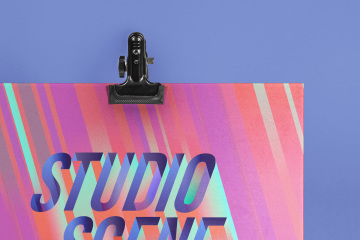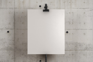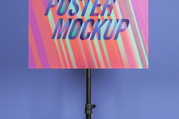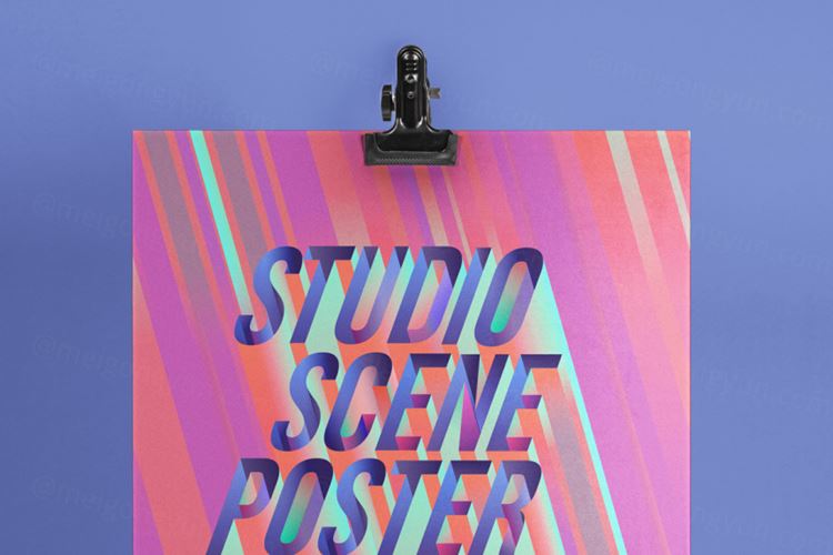 这是一个简单而详细的装订夹psd海报样机,位于摄影棚三脚架上。您可以切换到水泥背景墙,并使用智能图层添加图形。