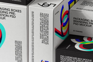 一整套不同的psd盒子包装样机 Psd Box Packaging Mockup Set