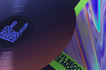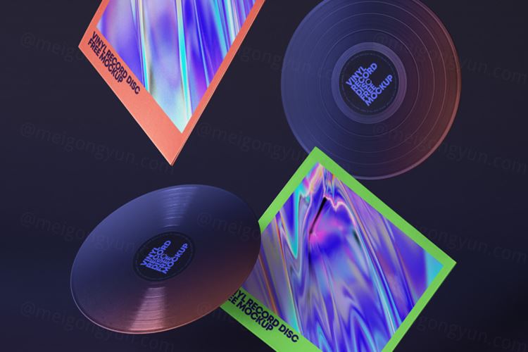 图穷联素材库 » 一组逼真漂浮的Psd乙烯基唱片模型样机 Gravity Psd Vinyl Mockup