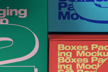 一套完整的psd包装盒模型,可创建您自己的风格品牌展示柜。轻松更改颜色,并使用智能图层将其设置为您自己的颜色。
