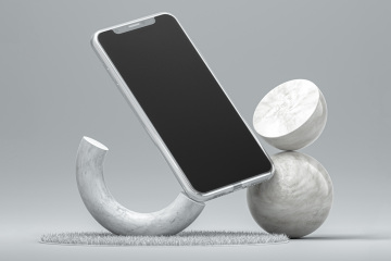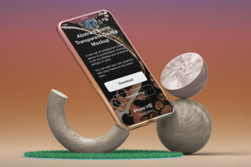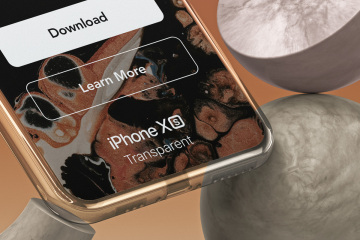 这是具有抽象元素的透明iPhone psd样机设备,可以使您的演示文稿与众不同。轻松更改元素颜色,并使用智能图层添加图形。