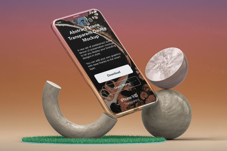 图穷联素材库 » 悬浮式手机屏幕效果预览模板 Mobile Mockup Abstract UI Project Scene Mockup 4